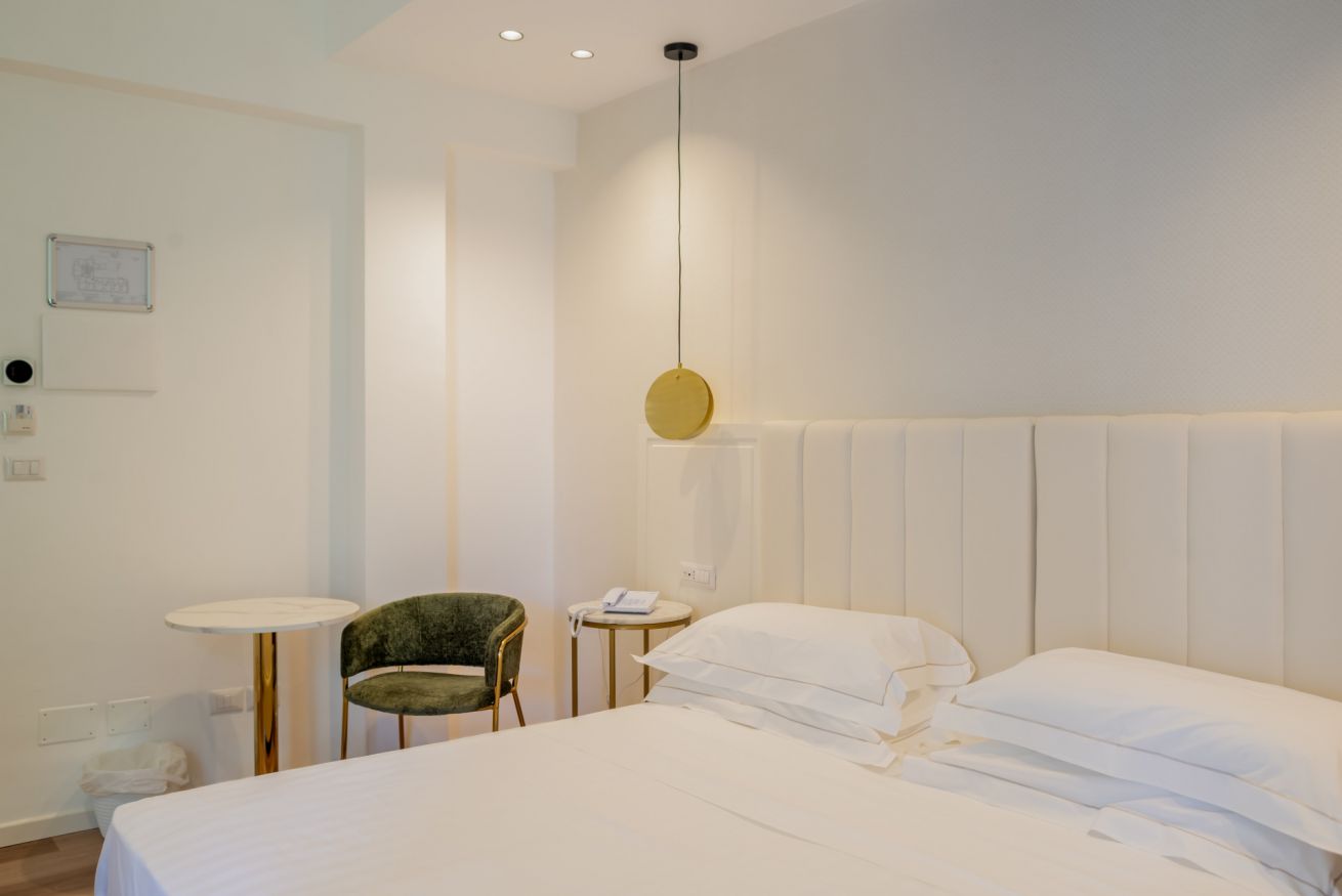 Camera doppia con letto matrimoniale. Alcune camere dispongono di balcone.