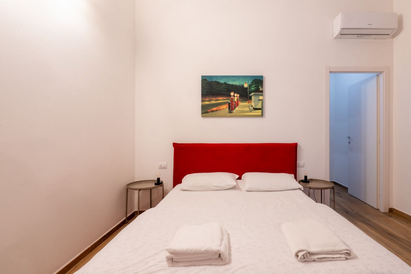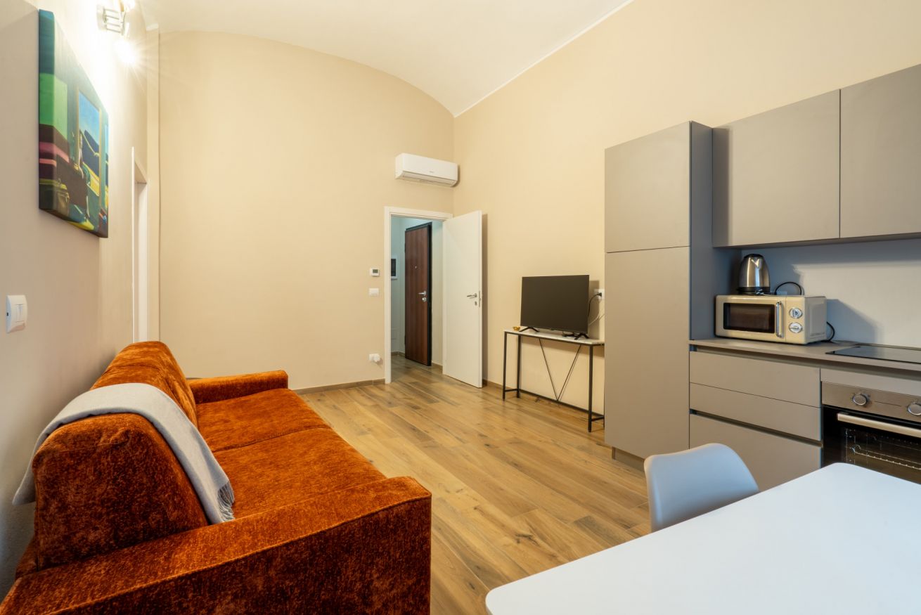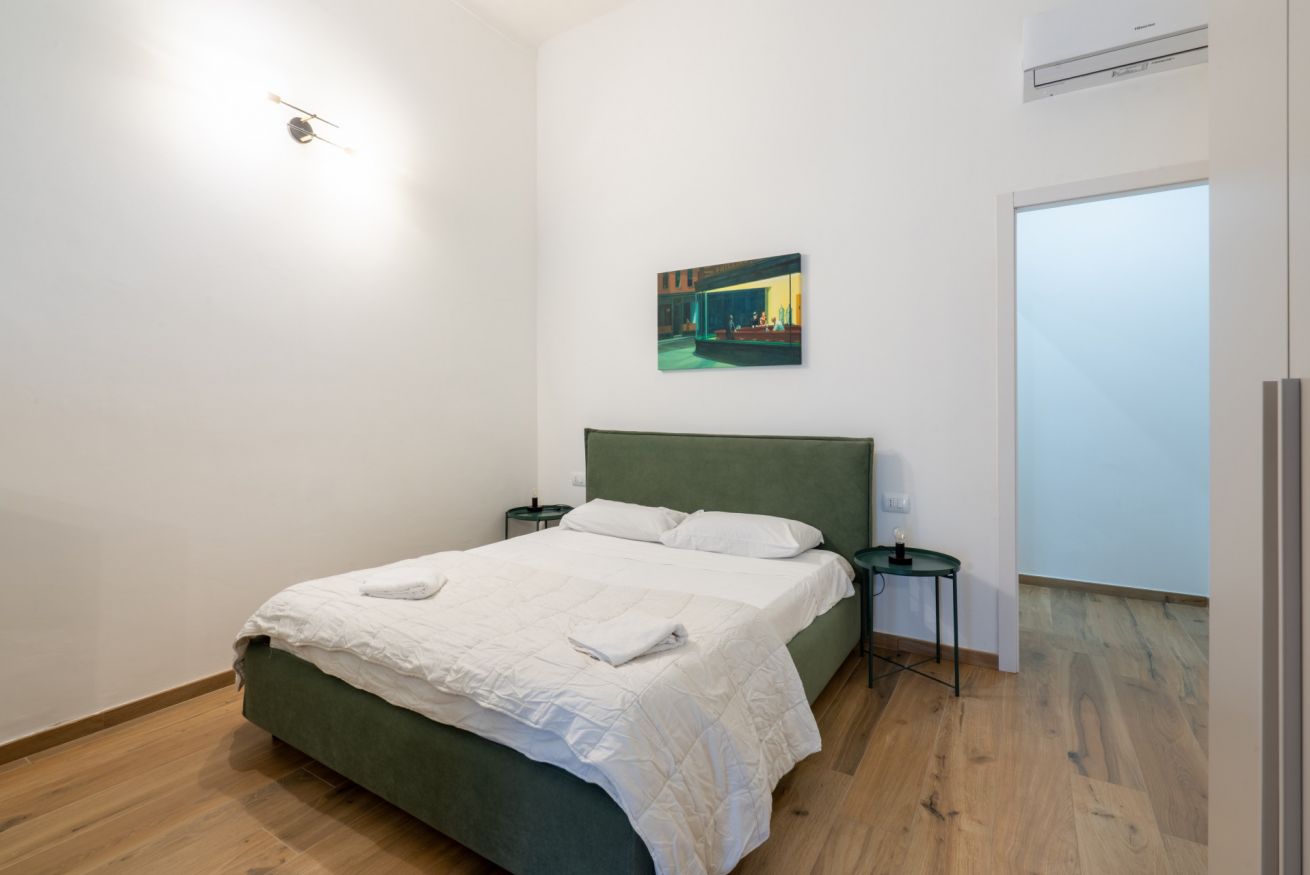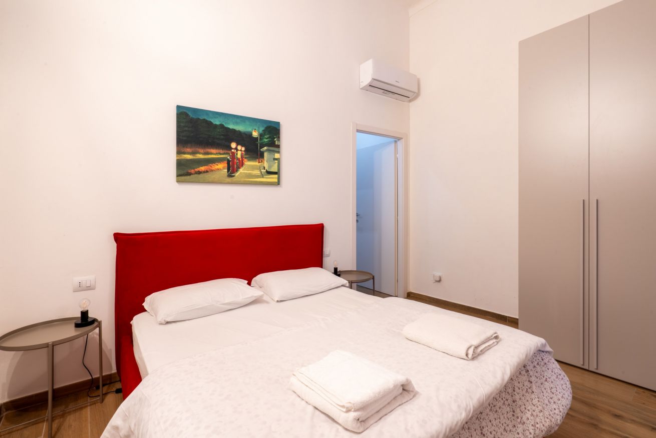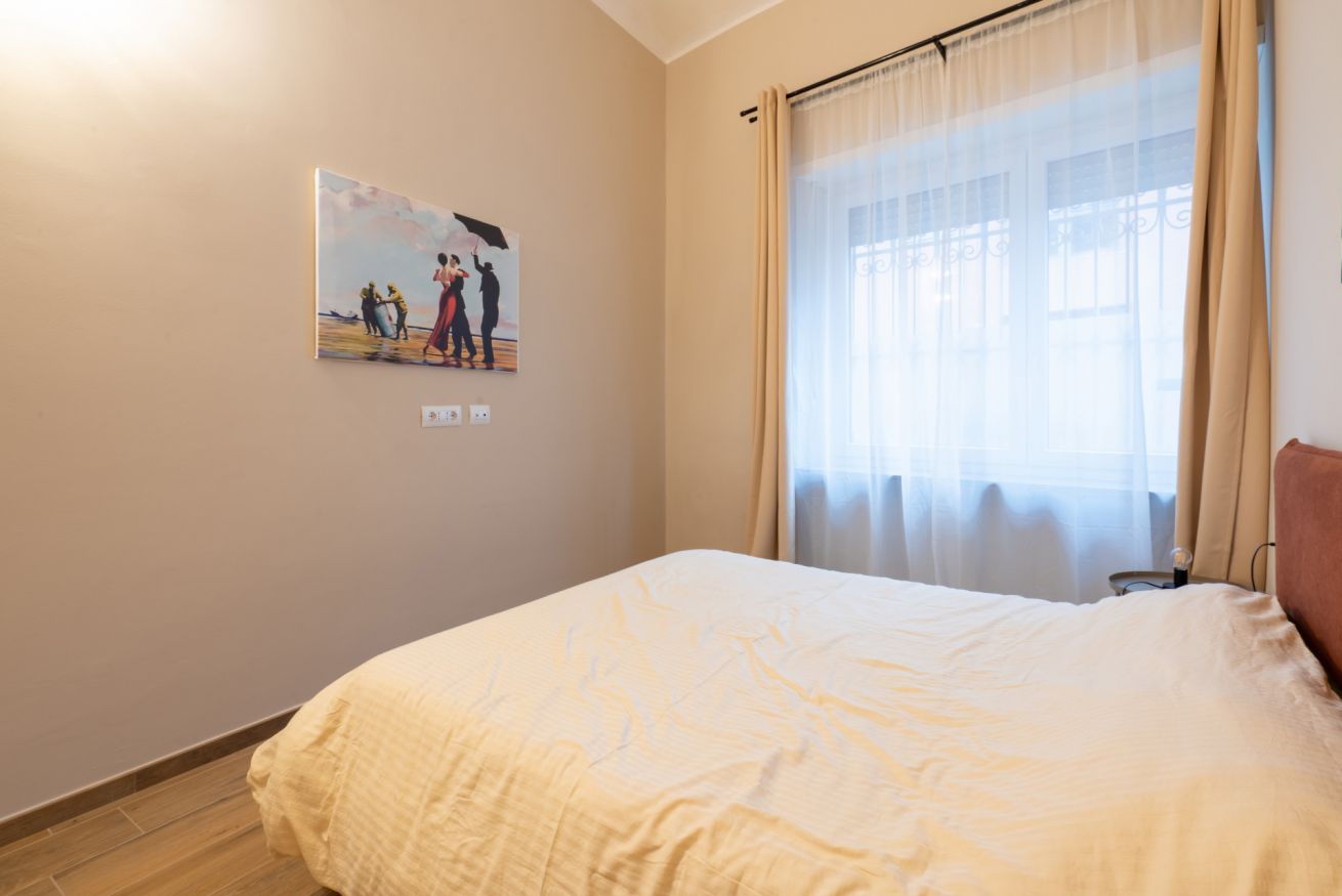 Monolocale con letto matrimoniale, divano letto matrimoniale e angolo cottura attrezzato. L'appartamento si trova in edificio separato rispetto al corpo centrale, in Via Clemente Stefano 8C bis.