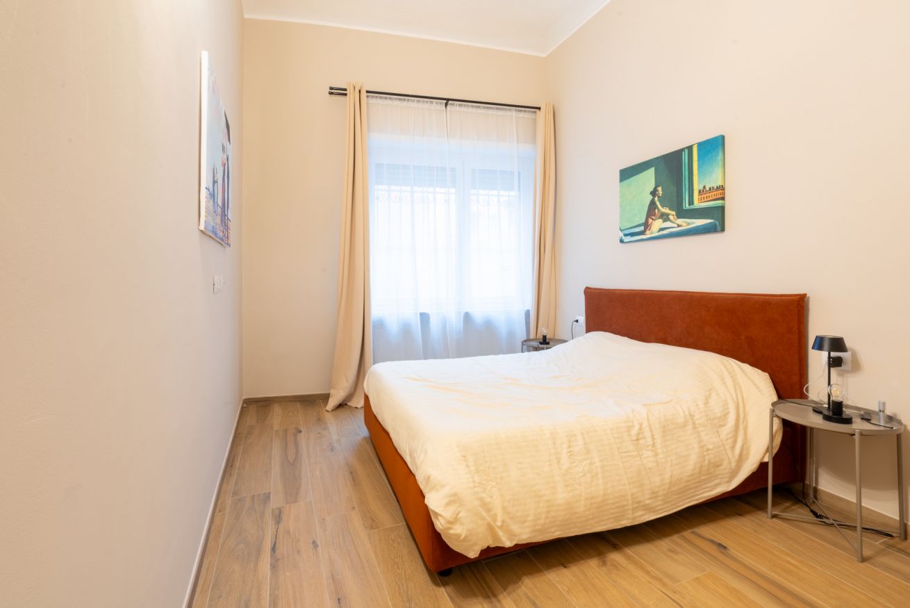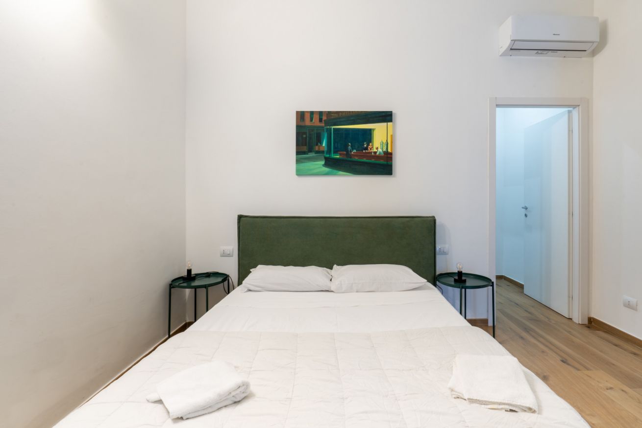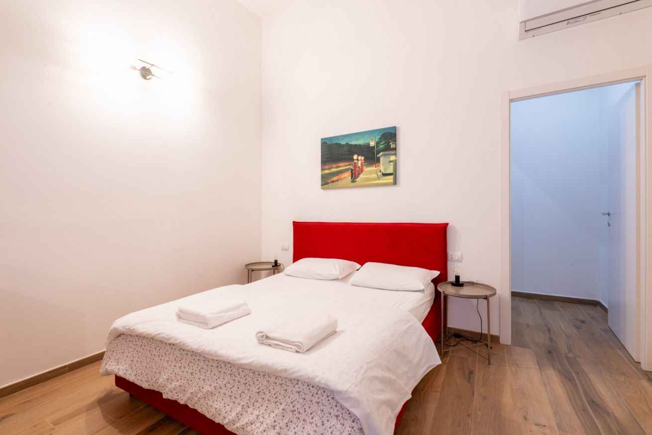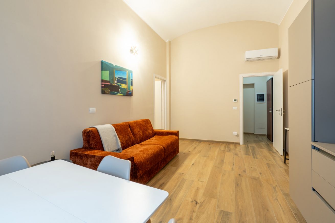 Monolocale con letto matrimoniale, divano letto matrimoniale e angolo cottura attrezzato. L'appartamento si trova in edificio separato rispetto al corpo centrale, in Via Clemente Stefano 8C bis.