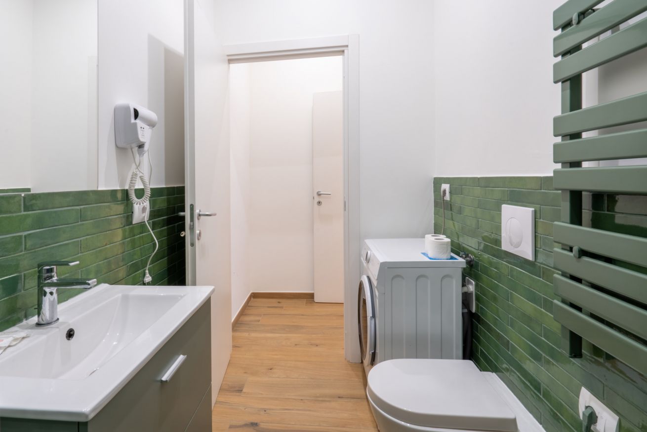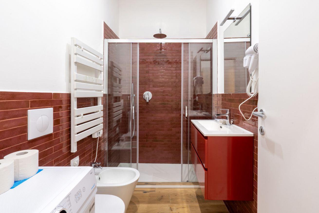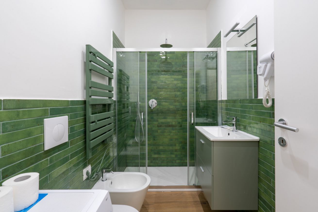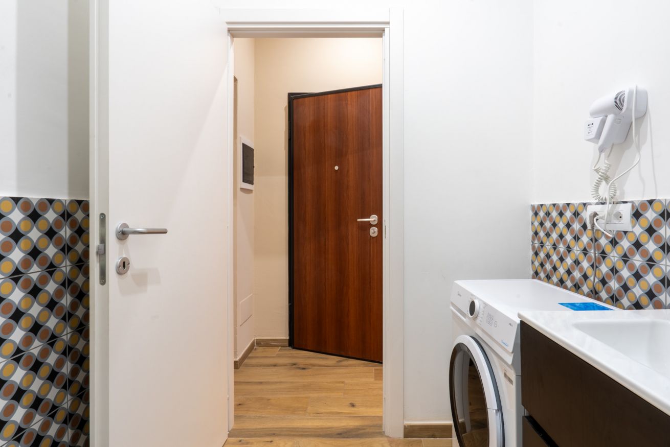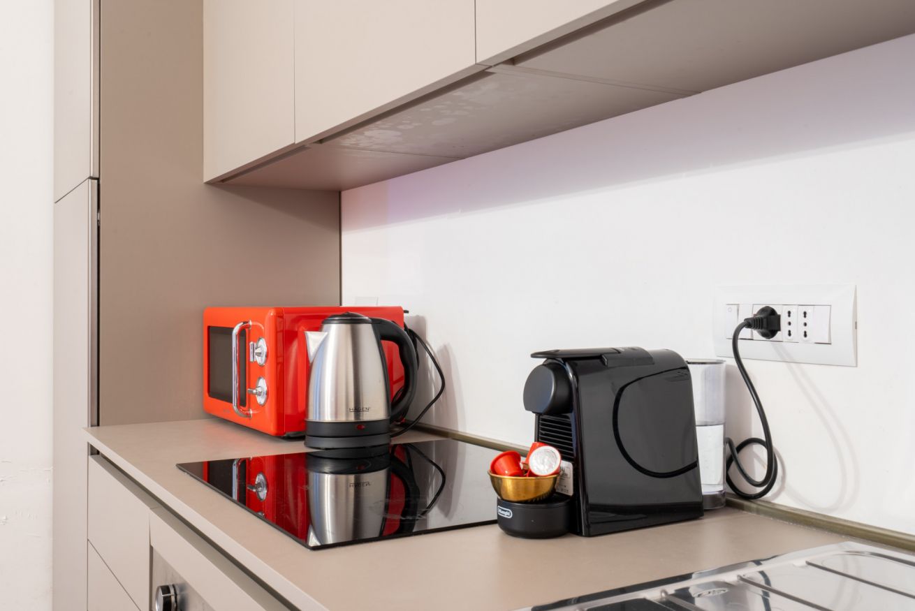 Monolocale con letto matrimoniale, divano letto matrimoniale e angolo cottura attrezzato. L'appartamento si trova in edificio separato rispetto al corpo centrale, in Via Clemente Stefano 8C bis.